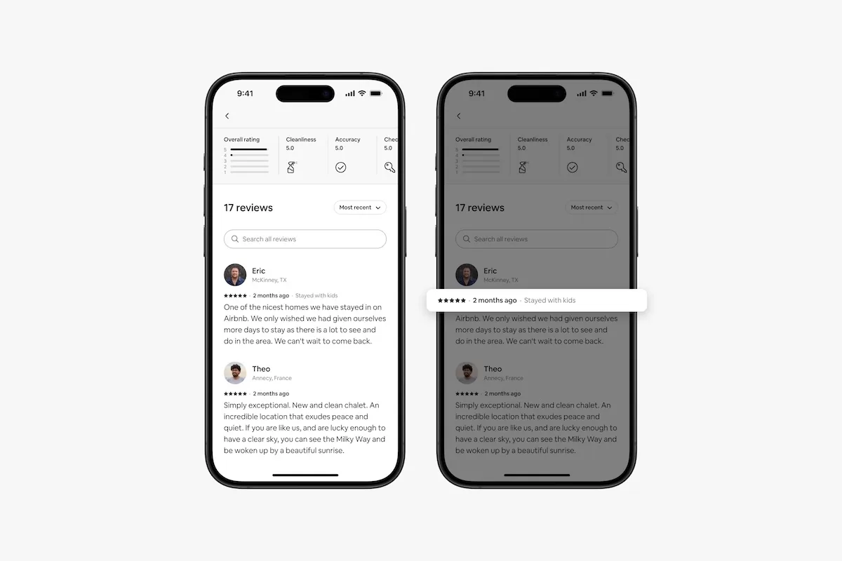 - Revamped ratings & reviews – A redesigned ratings page, with new features to help guests understand the quality of every home.