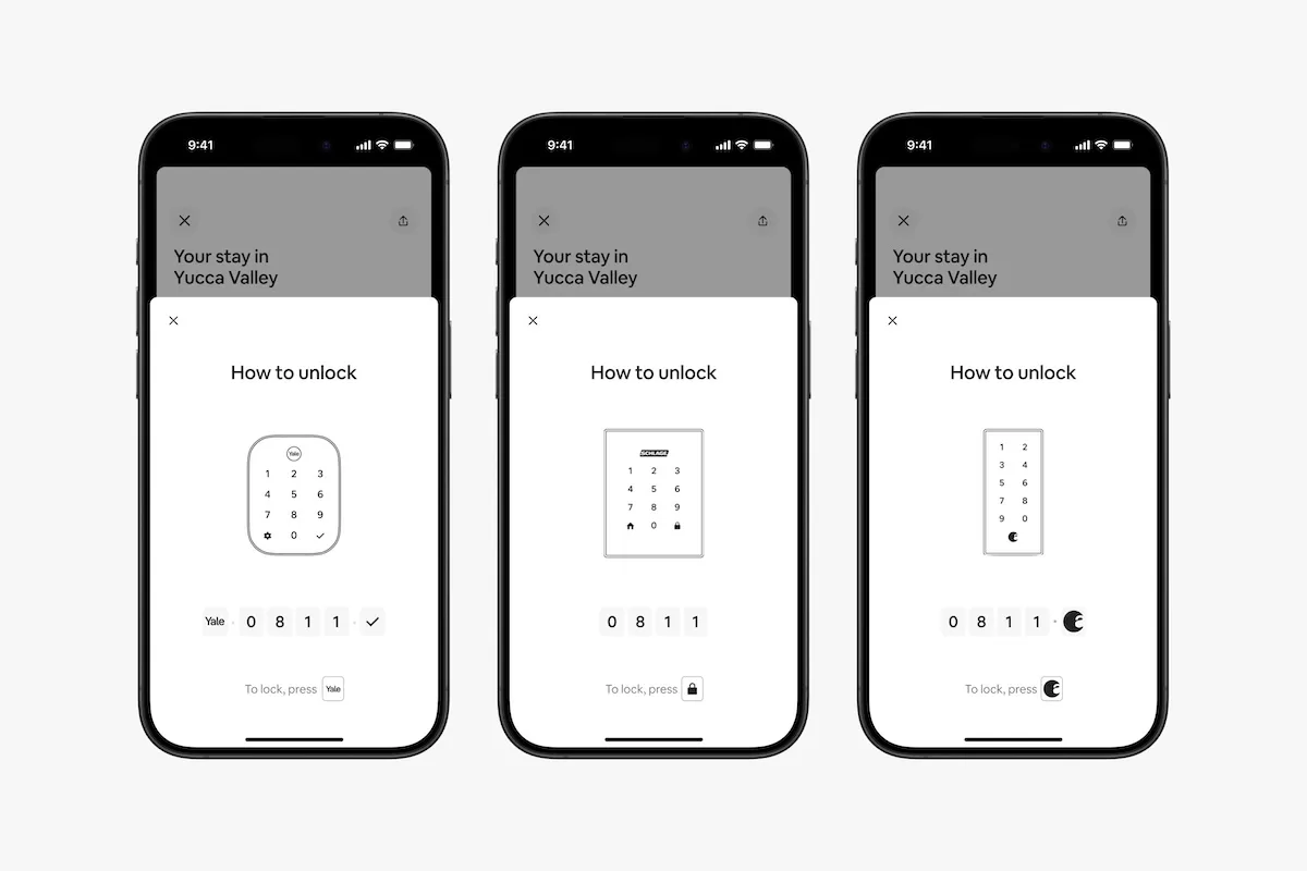- Smart lock integration – Hosts can connect compatible smart locks to their Airbnb account and automatically generate a unique code for every reservation. Guests can view their entry codes right in the Airbnb app before they arrive. Smart lock integration will begin rolling out in the US and Canada later this year with support for certain locks from Schlage, August, and Yale.
