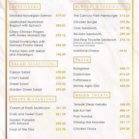 Did you say pasta? Century Park Hotel offers your favorite pasta dishes for you to enjoy. You can also choose fromour succulent salad selections and burgers that will leave you full and contented.