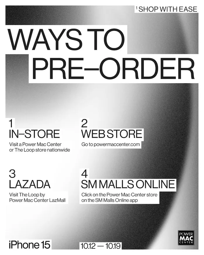 To secure their devices of choice, customers can pre-order in four convenient ways: (1) in-store at all Power Mac Center and The Loop branches nationwide; (2) online at the official Web Store ; (3) The Loop by Power Mac Center in Lazada; and (4) Power Mac Center Store in the SM Malls Online app.