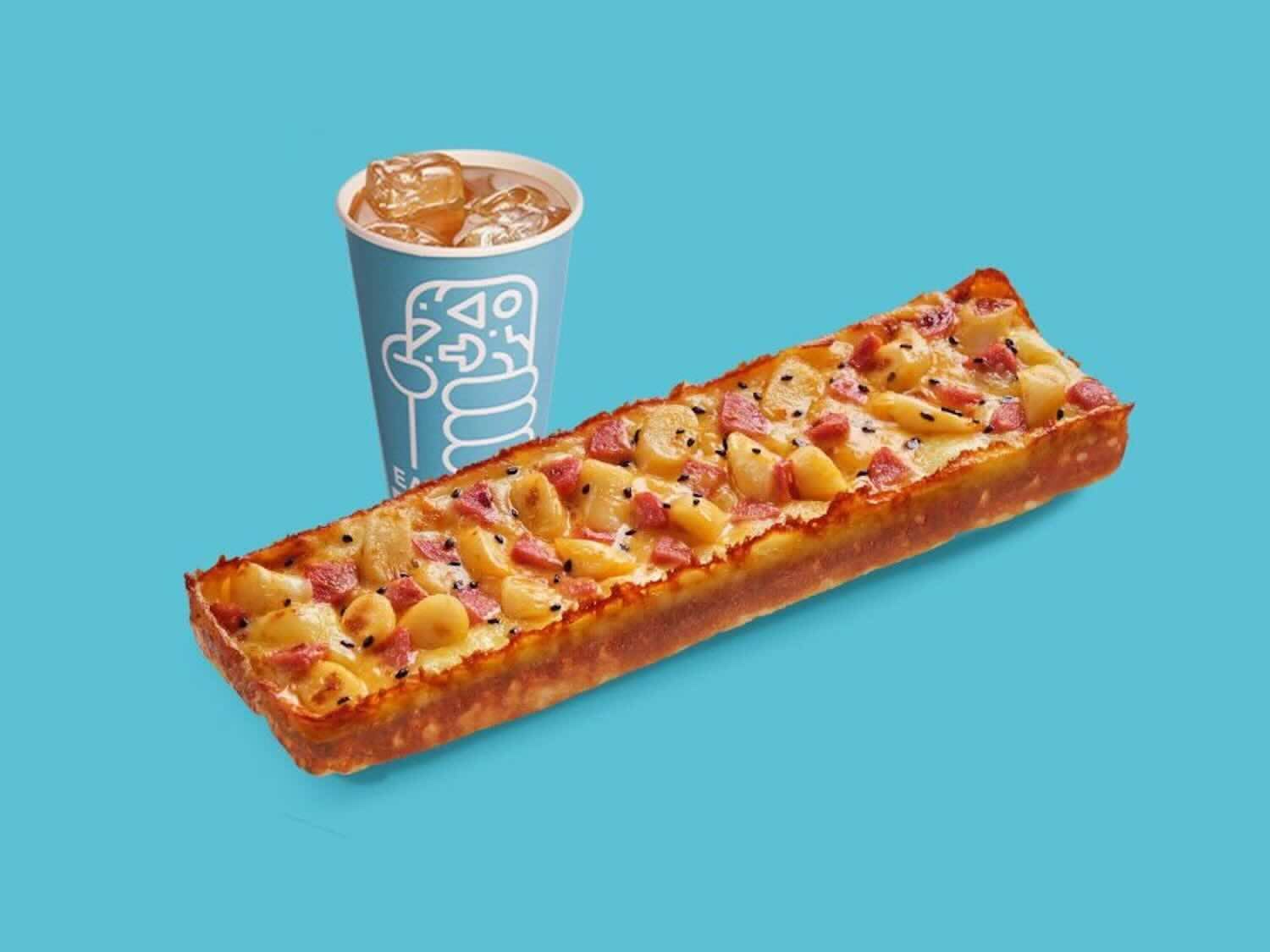 A love letter to Korea’s favorite street food, this pizza is layered with gooey mozzarella, a creamy sauce, and topped with chewy rice cakes, slices of hotdog, a rich cheese spread, and a sprinkle of black sesame seeds. It’s the ultimate cheesy, and satisfying comfort food fusion.