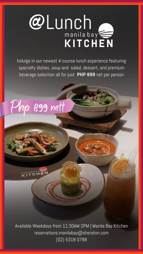 Available from Monday to Friday, 11:30 AM to 2:00 PM, this curated lunch set promises not only a satisfying dining experience but also the perfect opportunity for a quick yet indulgent escape from the bustle of the city. Whether for a business lunch, a catch‑up with friends, or a solo treat, Manila Bay Kitchen @Lunch blends the flavors of the season with Sheraton’s signature warm hospitality.