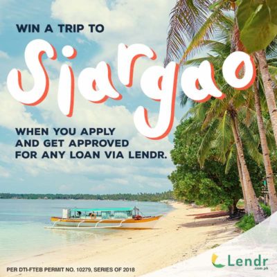 Joining the Wow, Siargao! Raffle Promo is easy. It is open to all new and already registered Lendr users. Borrowers earn a raffle entry when they apply for a loan in any amount via Lendr from June 11 to August 31, 2018 and get an approval until September 10, 2018. It is valid for any loan type in Lendr: Auto Loan; SME/Business Loan; Home Loan; Personal Loan; OFW/Seaman Loan; Trucks and Equipment Loan; Microfinance; Car refinancing; Doctor’s Loan. Raffle draw will be held on September 14, 2018. The winner will be announced on September 19, 2018 on Lendr’s website (lendr.com.ph) and Facebook page (www.facebook.com/lendrph). The winner will also be notified via text message and e-mail using the details registered in his/her Lendr account.