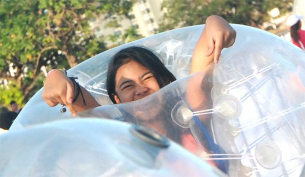 Take part in the craziness of Human Foosball, keep singing through Wacky Karaoke, run in sumo suits through Sumo Relay, play Agawan Base dressed in a zorb ball, or manage three lay-ups with binoculars on in Binocular Basketball. Try to kick a goal without wobbling, but only after spinning yourself silly in Dizzy Penalty Kick. There’s Buzzingo, Extreme Jack & Poy, Brain Games, Photo Mission and more. Over a dozen simultaneous games and activities will keep you, family and friends entertained throughout the day.